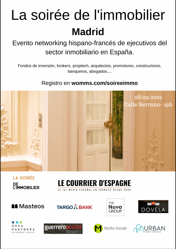 Pour cette 1ère édition 2022, Le Courrier remercie le soutien de Targo Bank, The Nuvo Group, Dovela, Guerrero Acosta, Morillon, Urban Home Avenue, Masteos España y Opea Partners. Nous remercions de même la présence de Stéphane Vojetta, député des français de d’Etranger de la 5ème circonscription, pour sa visite. Il a d’ailleurs aussi une experience d’entrepreneur dans l’immobilier en Espagne.