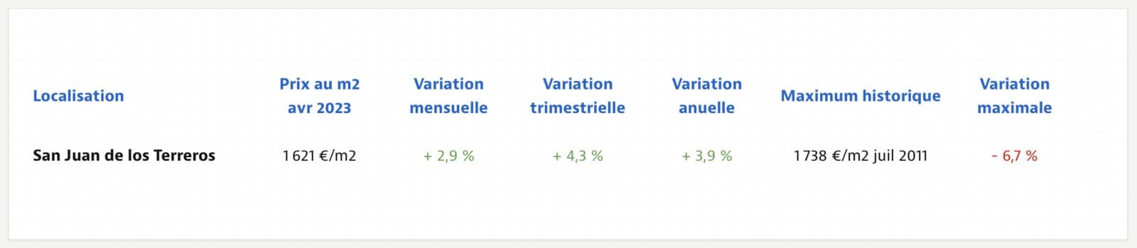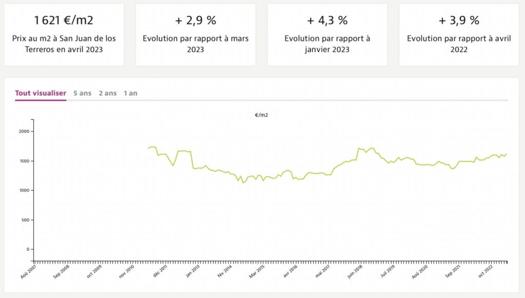 L’évolution des prix de l’immobilier à San Juan de los Terreros ces 5 dernières années