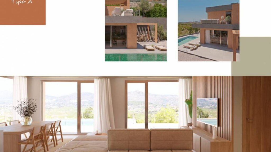 Ces villas de luxe à Lliber, Costa Blanca, offrent des résidences modernes et durables dotées des dernières avancées technologiques et solutions d’économie d’énergie, favorisant la préservation de la planète et le bien-être des résidents. Les maisons de Type A offrent 2 chambres, 1 salle de bain complète, un espace de coworking à l’étage supérieur, tandis que le rez-de-chaussée comprend la chambre principale avec salle de bain attenante, salon-salle à manger, cuisine ouverte, terrasse couverte, et une piscine privée avec parking extérieur. Pour les maisons de Type B, l’étage supérieur présente la chambre principale avec salle de bain attenante, et deux autres chambres avec une salle de bain complète. En descendant l’escalier, on trouve le salon, la cuisine, une terrasse couverte, et l’accès à la piscine privée avec parking extérieur.