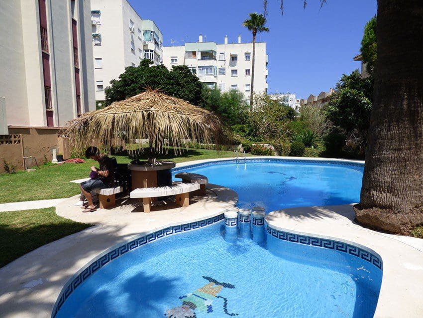Immobilier Arroyo de La Miel, Agence immobilière située dans le centre d’Arroyo de La Miel, commune de Benalmadena (Malaga) vend bel appartement dans résidence avec piscine et jardins, avec trois chambres et deux salles de bains à quelques mètres de la station de train d’Arroyo de La Miel (Malaga-Fuengirola).