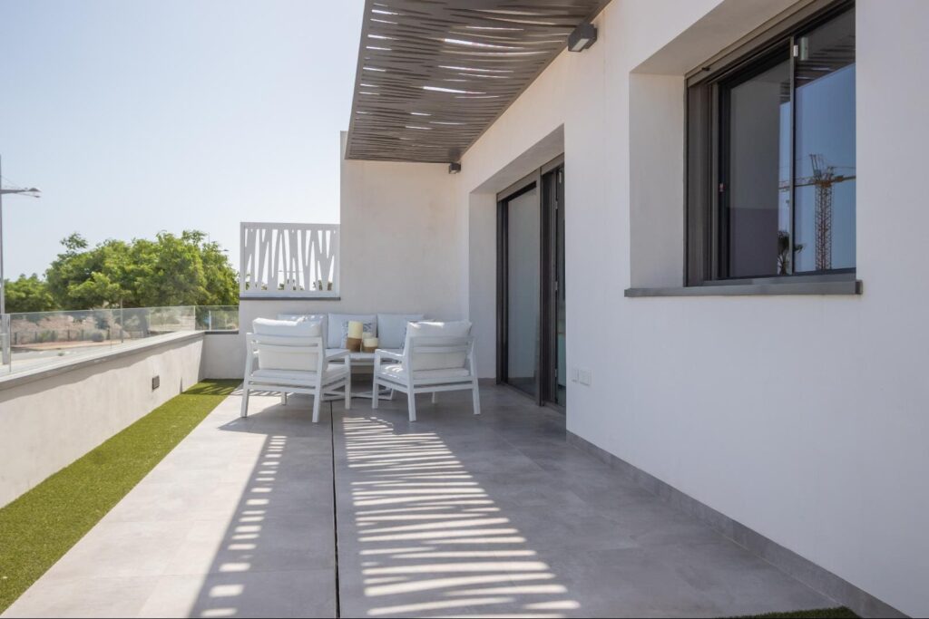 Pour plus de confort, les salles de bain sont équipées de chauffage au sol électrique et de moustiquaires dans les douches. Le meilleur endroit pour vivre et faire du télétravail. Après de longues semaines d’enfermement, nous avons appris beaucoup de choses, entre autres, qu’il est possible d’effectuer de nombreux travaux en présentiel à domicile avec une normalité absolue, et par conséquent, le logement sur la plage n’est plus indiscutablement lié au schéma des vacances.