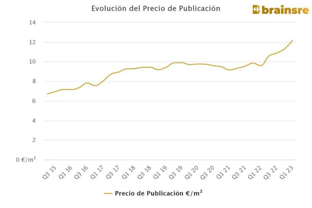 En dernière position se trouve le quartier Centro, avec un prix de location de 15,2 €/m2/mois, soit l’avant-dernier prix de la municipalité. Il convient également de noter que le prix a augmenté consécutivement depuis le deuxième trimestre 2021.