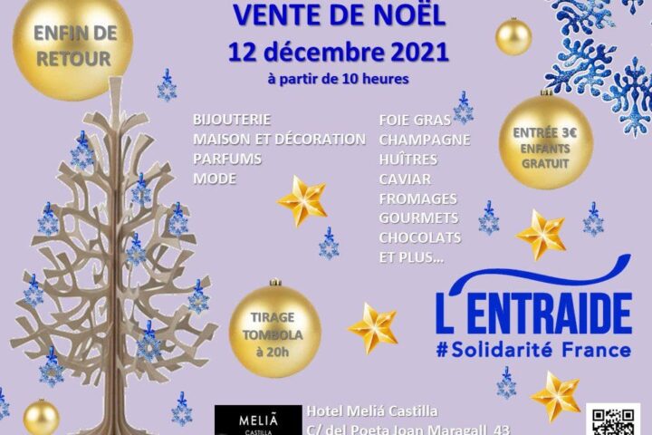 Communiqué : Vente de Noël de l’Entraide 2021 L’Entraide a le plaisir d’annoncer le retour de sa traditionnelle Vente de Noël dans les salons de l’Hôtel Meliá Castilla le 12 décembre 2021