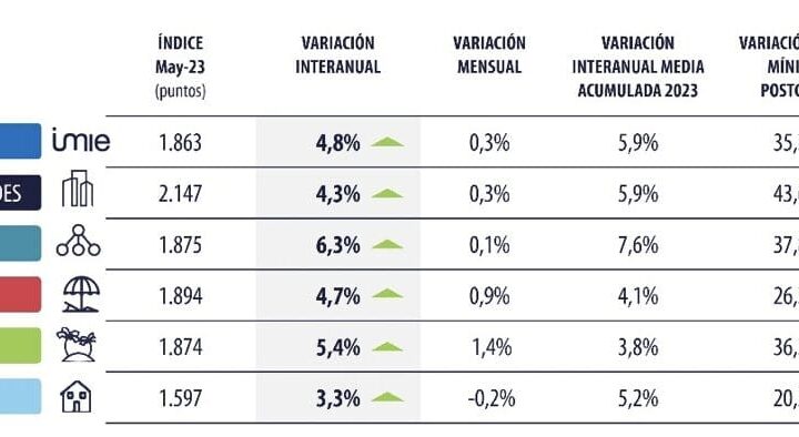 Statistiques mensuelles de Tinsa IMIE pour le mois de mai, analysant l’évolution des logements neufs et d’occasion dans cinq grandes zones de marché: les capitales, la côte méditerranéenne, les îles, les zones