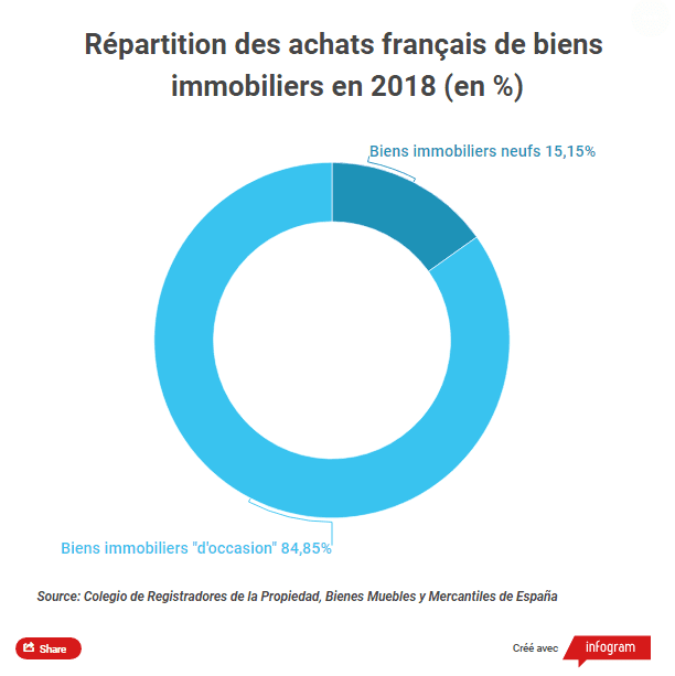 Au moment de choisir leurs biens immobiliers, 84,05% d’entre eux se tournent vers les biens “d’occasion”, quand les 15,95% restants achètent des biens neufs.