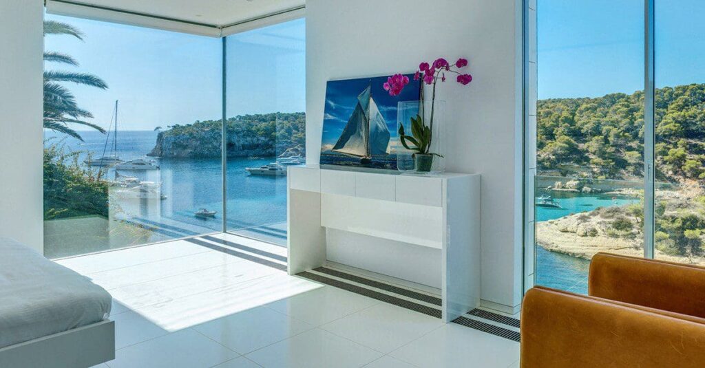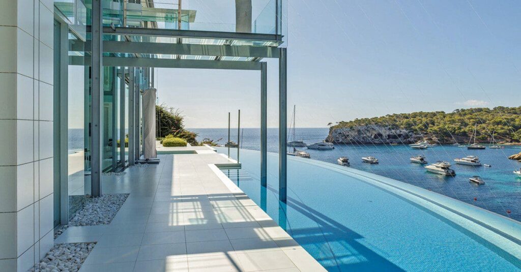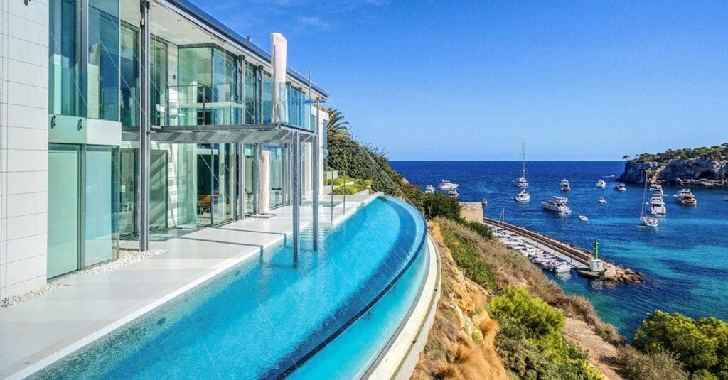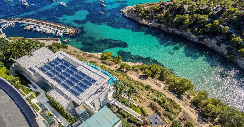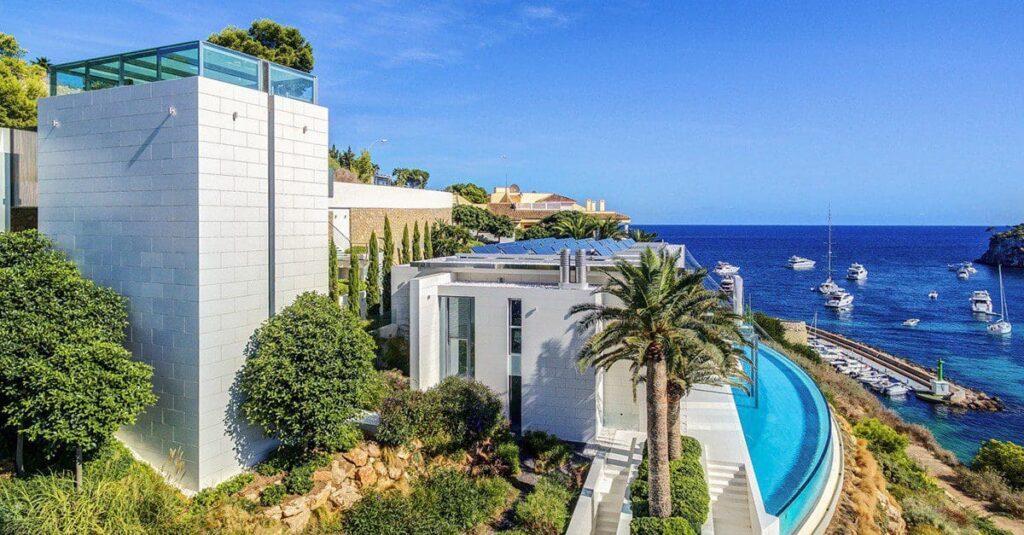 L’Espagne se caractérise par ses côtes et ses îles et à Calvià, Majorque, une incroyable villa se distingue par son design, mais surtout par son emplacement. De l’intérieur, il semble que la maison soit sur la mer. Avec une vue imprenable sur la baie de Portals Vells à Sol de Mallorca, cette villa est à vendre pour 21 millions d’euros. Et le meilleur de tous, il dispose d’un ascenseur privé directement à la crique.