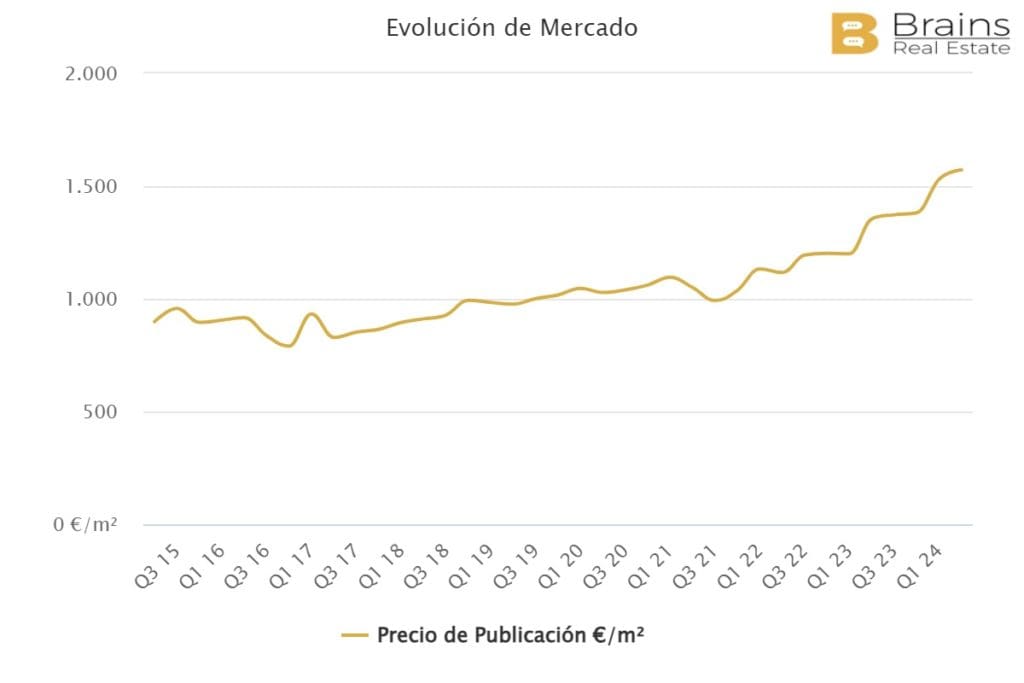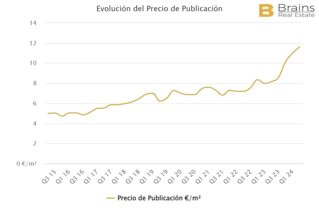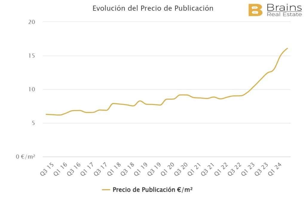 Le prix moyen d’une propriété à louer dans la ville de Valence s’élève à 14,9€/m2/mois, ce qui représente une augmentation annuelle de 21,7% et une augmentation trimestrielle de 4,6%, selon les données de la plateforme de big data immobilière Brains Real Estate.