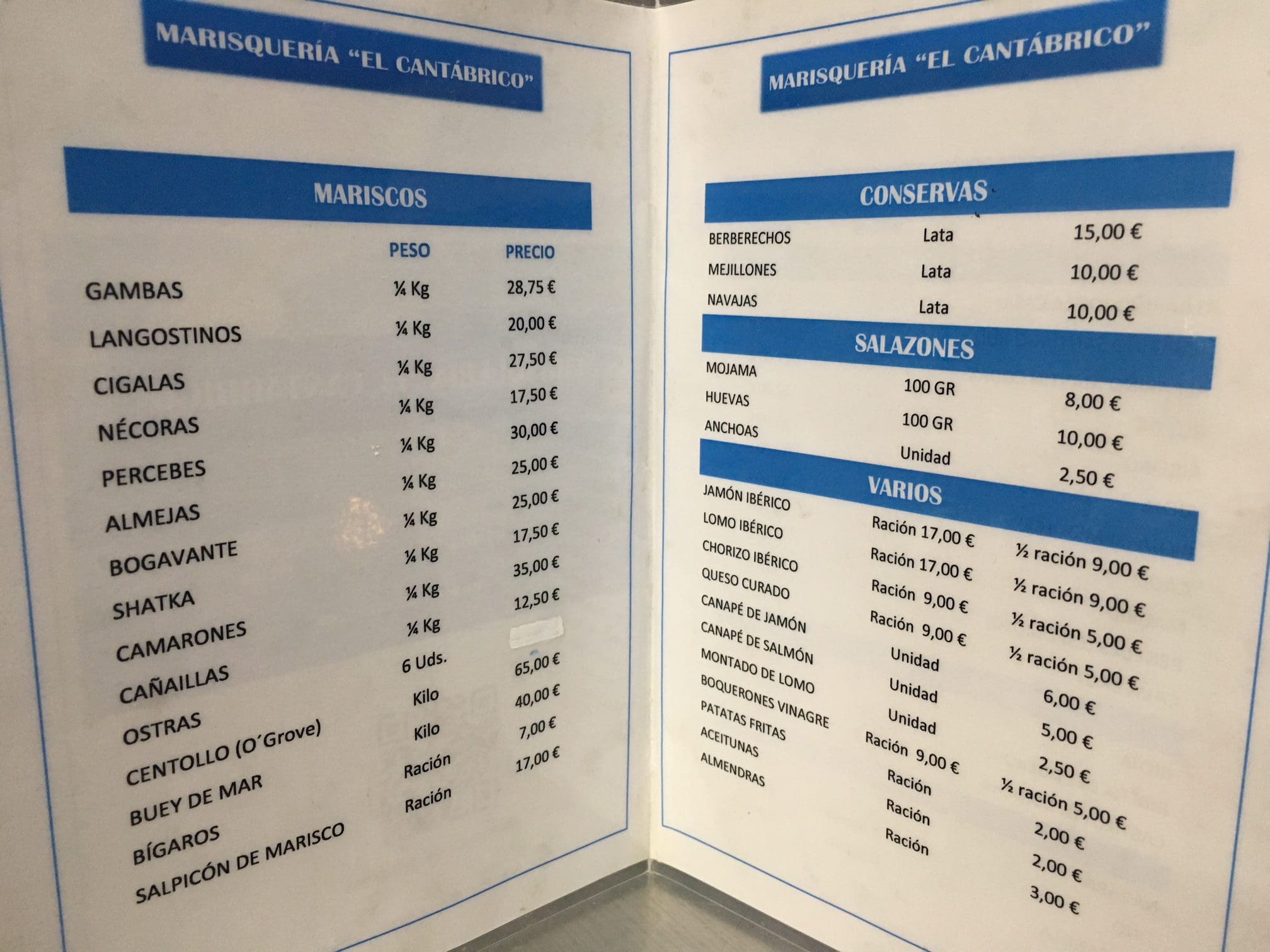 Un petit bar situé au cœur du quartier de Salamanca : le Cantabrico. Voilà un bar à seafood, très authentique, qui, comme dans la plupart de ces endroits, étale ses crustacés et propose une petite salle avec des tables en bois pour les déguster.