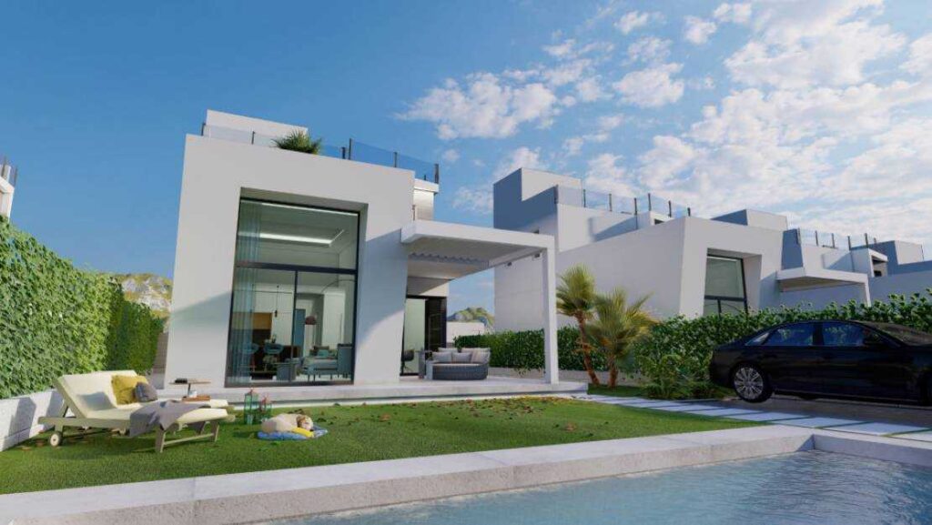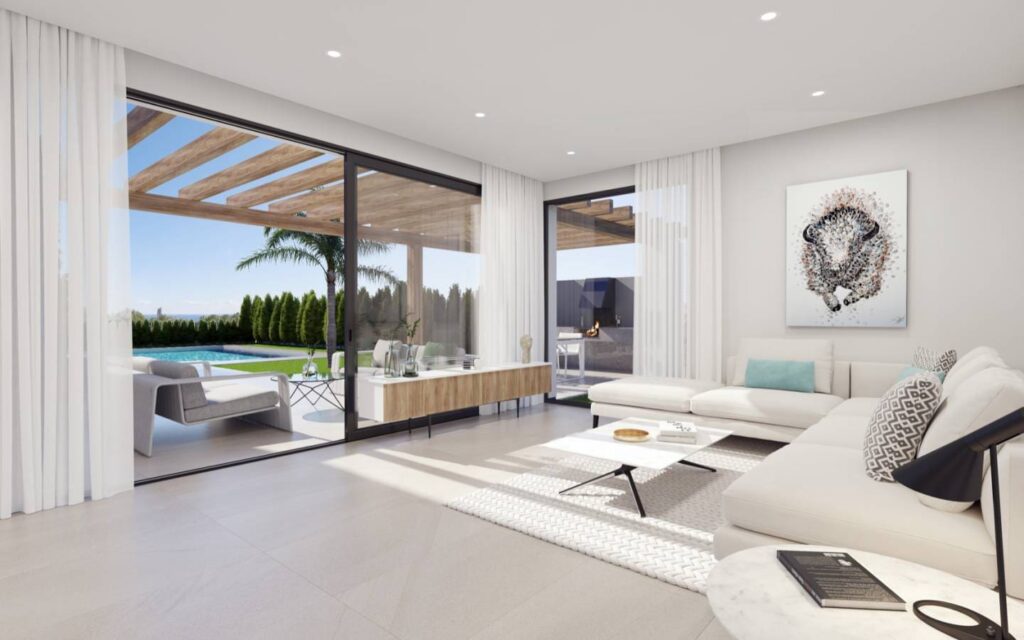 Chaque villa dispose de 3 chambres et 3 salles de bains, piscine privée, solarium, située à quelques minutes à pied de l’exclusif Puig Campana Golf Club House. Il existe la possibilité d’avoir une vue sur la montagne ou sur la mer.