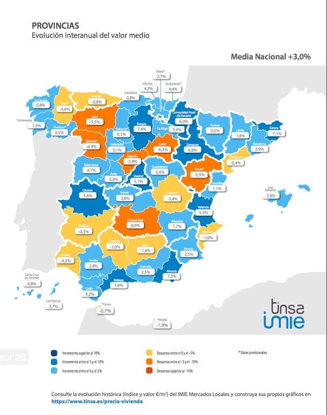 Le logement en Espagne a augmenté de 3% en moyenne au deuxième trimestre, contre 4,9% au trimestre précédent et 5,8% au quatrième trimestre de 2018. Parmi les grandes villes, le frein est perceptible à Barcelone, où, après des années de forte hausse, le logement n’est que de 1,6% plus cher qu’il ya 12 mois, après une chute de 1,7% entre le premier et le deuxième trimestre.(TINSA)