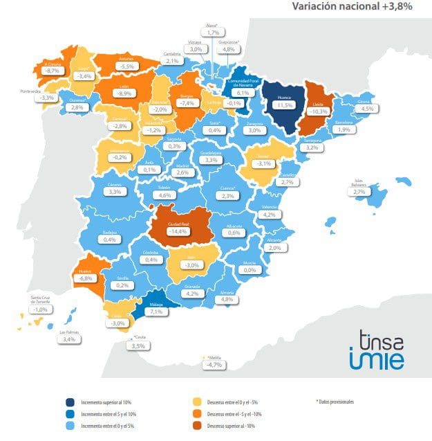 Jusqu’à six communautés autonomes entrent dans le négatif, avec des valeurs inférieures à celles d’il y a un an: Murcie (sans variation à peine), La Rioja, les deux Castille, Asturies et Galice. Le nombre de provinces avec une variation annuelle négative augmente à dix-neuf.