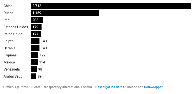Selon un rapport réalisé par l’organisation internationale Transparency International, dédiée au mouvement anti-corruption, à travers différentes questions posées au ministère espagnol des Affaires étrangères et au ministère de l’Inclusion, de la Sécurité sociale et des Migrations, entre 2013 et 2023, 6.200 concessions de visas dorés ont été accordées, pour un montant total d’investissements de 3 423 millions d’euros, et 96% d’entre elles ont été réalisées avec l’achat d’un bien immobilier.