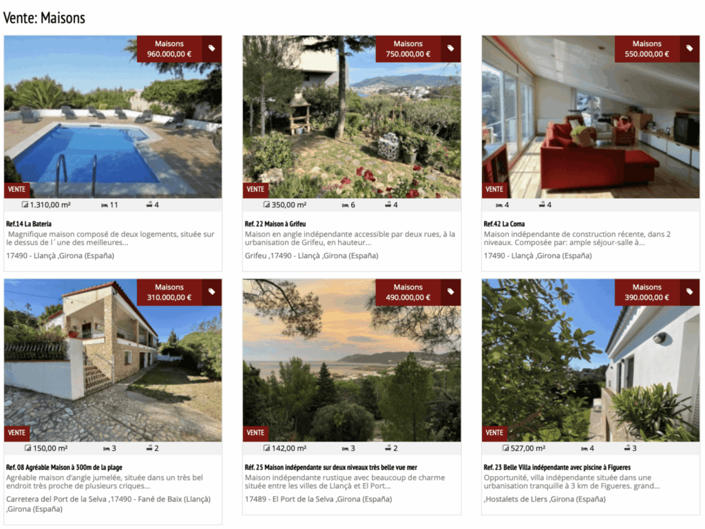 Spécialisée dans la vente de biens immobiliers, Immo Fane propose une gamme variée de propriétés, allant des appartements aux maisons, terrains, garages, locaux commerciaux, maisons anciennes, commerces, et bien d’autres. Son domaine d’activité s’étend à la Costa Brava Ampordanesa et aux villages environnants tels que Llançà, El Port de la Selva, Colera, Empuriabrava, Figueres, Garriguella, Selva de Mar, Espolla, Sant Climent de Sescebes, Palau-Saverdera, Pau, Roses, Vilajuïga, Vilamaniscle, Vilarnadal, et bien d’autres.