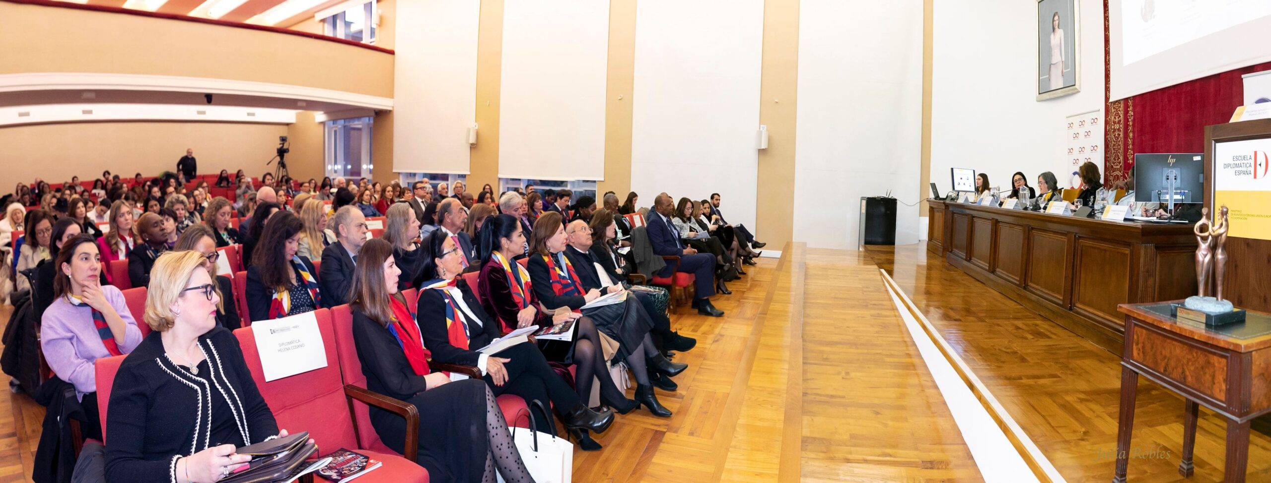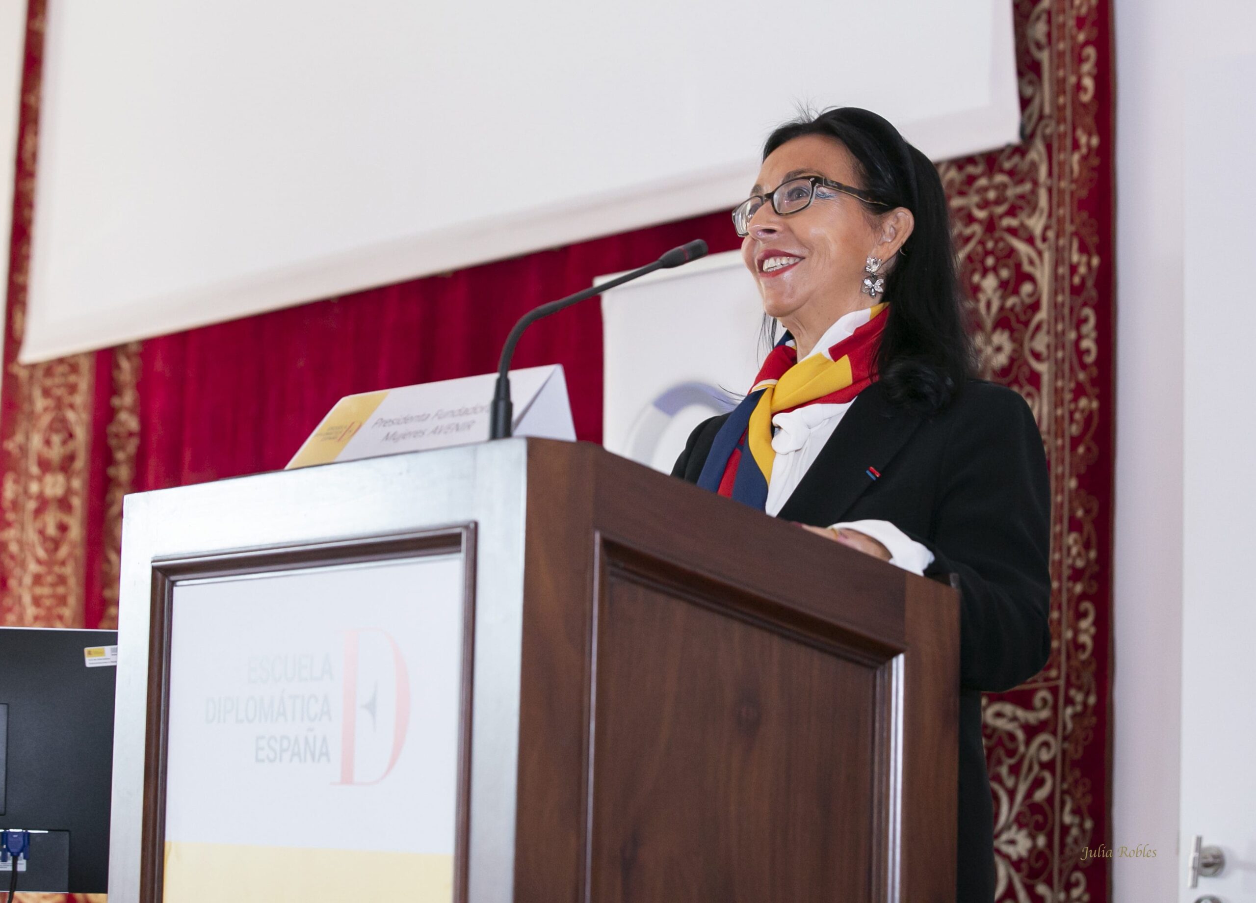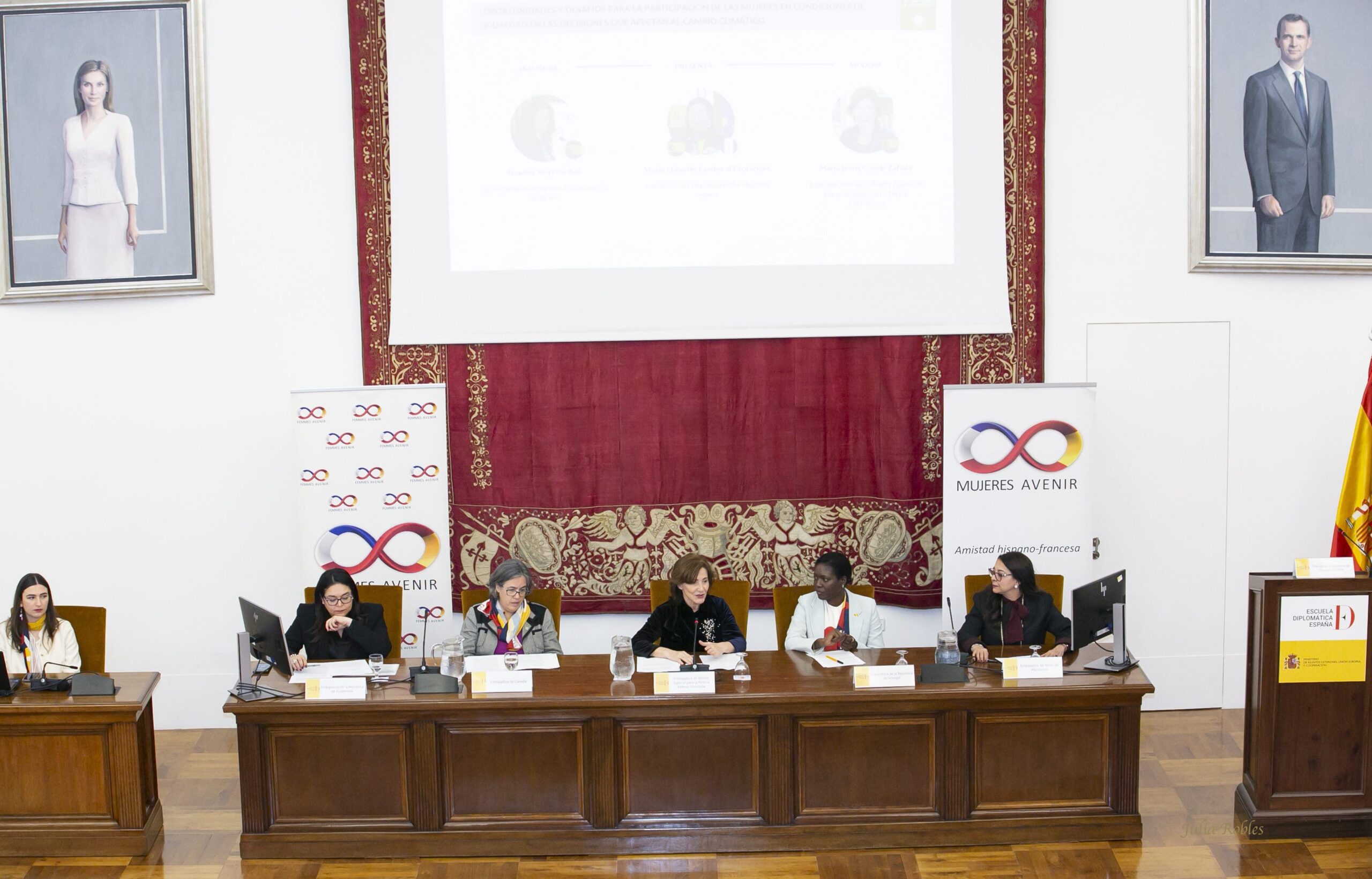 L’association d’amitié franco-espagnole Mujeres Avenir a organisé hier la “VIème Conférence Internationale sur les Femmes et la Diplomatie à Madrid”, en collaboration avec le Ministère des Affaires étrangères, de l’Union européenne et de la Coopération et la revue “Diplomacia Siglo XXI“. L’événement a eu lieu dans l’Aula Magna de l’École diplomatique, sur le Paseo Juan XXIII sous le slogan “Opportunités et défis pour la participation égale des femmes aux décisions qui les concernent”.
