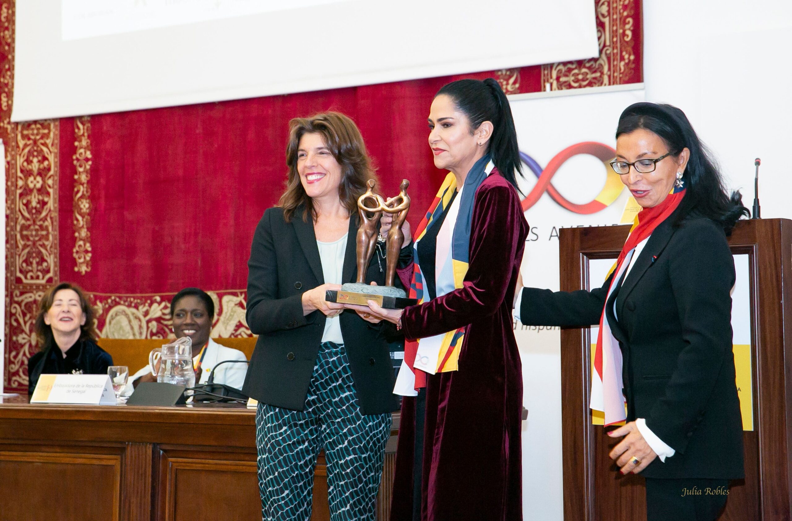 récompense les femmes du monde de l’ibérophonie et/ou de la francophonie qui se sont distinguées par leur action de défense des droits de l’homme. La secrétaire d’État aux affaires étrangères et aux affaires mondiales, Ángeles Moreno Bau était chargée de remettre le “Prix de Mujeres Avenir” à la journaliste, écrivain et activiste, Lydia Cacho.
