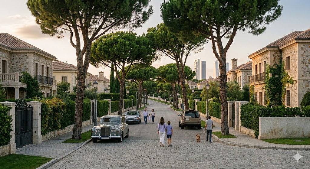 Au nord de Madrid et dans sa couronne périurbaine, loin de l’agitation de la Gran Vía et du quartier de Salamanca, existent des univers résidentiels fascinants et largement méconnus du grand public : des urbanizaciones cerradas qui reproduisent les codes des “gated communities” nord-américaines tout en s’inscrivant formellement dans le cadre juridique de la loi espagnole sur les copropriétés. Ces résidences ultra-sécurisées, véritables forteresses discrètes abritant chefs d’entreprise, stars du football et grandes fortunes internationales, forment des villages hors de la ville. Ce paradoxe mérite qu’on s’y attarde.