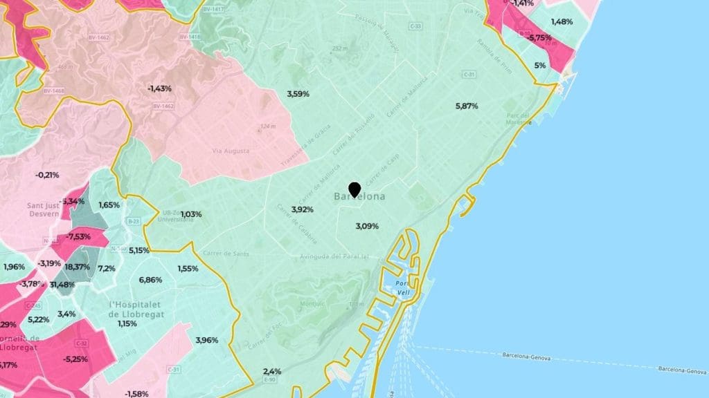 Alors que dans 6 des 10 districts de Barcelone, les prix de l’immobilier ont augmenté de plus de 3% d’une année sur l’autre, ils ont baissé dans l’un d’entre eux.