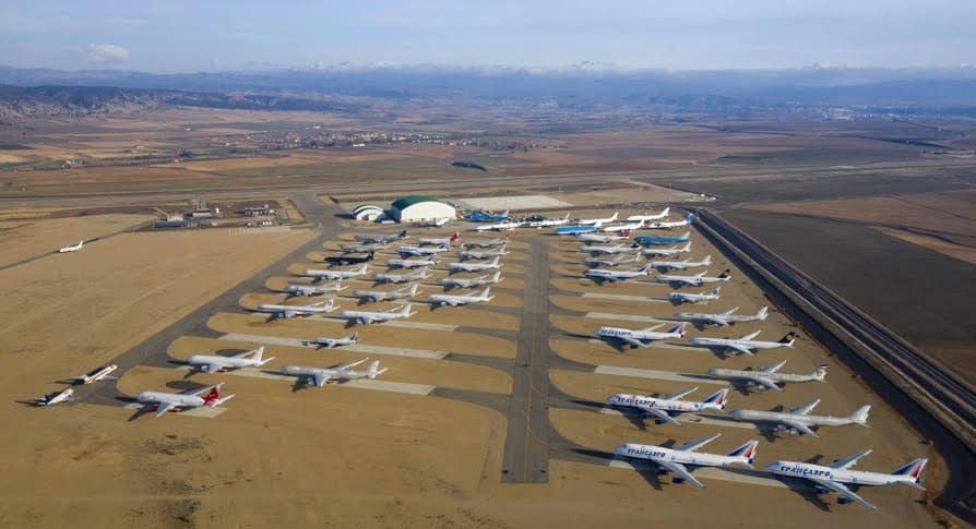 De cimetière à parking Ces faux aéroports sont appelés des « cimetières », car les compagnies aériennes envoient leurs appareils obsolètes dans ces aires de stockage, généralement des zones secs et arides, car ce climat permet de les maintenir en bon état avant leur remise en service ou leur recyclage. Du coup, avec l’arrêt du trafic, l’aéroport de Teruel, avec plus d’une centaine d’avions (dont plusieurs A380) est devenu la plus grande plateforme aéroportuaire MRO (Maintenance and Repair Organization) d’Europe. Au total, environ 400 personnes travaillent dans les différentes entreprises qui gèrent le recyclage et les réparations de tous ces appareils. De nouveaux espaces sont d’ailleurs en cours d’aménagement pour accueillir les nouveaux venus et en 1 an le chiffre d’affaire a augmenté de 30 %.