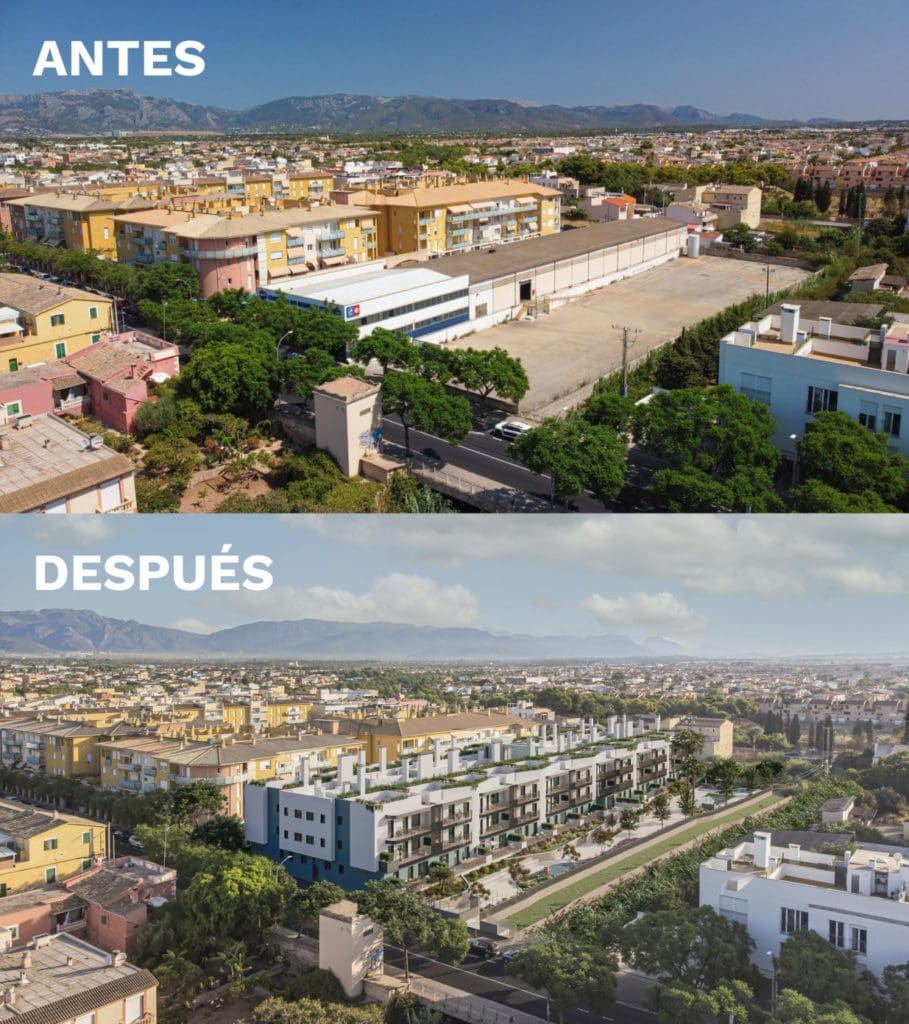 «Une fois de plus, l’engagement urbain d’Aedas Homes est mis en évidence comme une entreprise qui fait bien plus que des maisons. Il crée également une ville en régénérant et en agissant sur des espaces tels que le bâtiment Pepsi-Cola à Marratxí. Nous nous sentons très à l’aise de convertir des propriétés comme celle-ci, qui représentait toute une cicatrice urbaine industrielle dans une enclave résidentielle de la municipalité », explique Dolores Rubio, responsable du développement d’AEDAS Homes aux îles Baléares et responsable du projet.