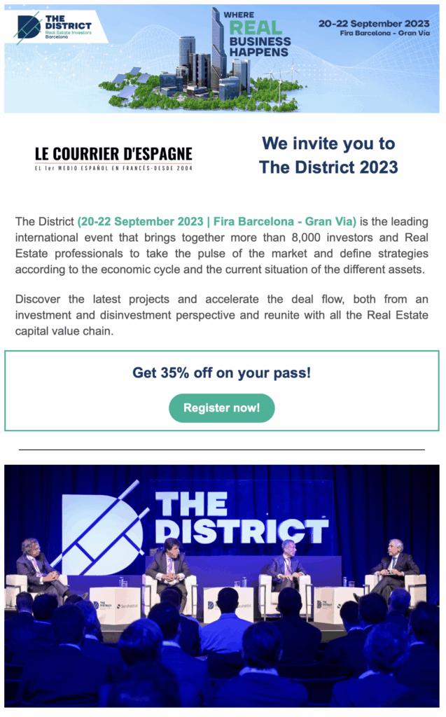 Depuis 20 ans Le Courrier d’Espagne s’associe au monde de l’immobilier avec la publication de plus de 8.000 articles au total et l’organisation de plus de 300 événement networking sur toute la péninsule afin de rapprocher investisseurs francophones et propriétaires d’actifs espagnols.