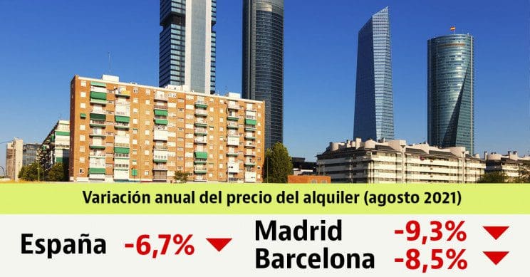 Les baisses les plus prononcées sont à Madrid, où les loyers ont baissé de 9,3%, et à Barcelone, où ils ont baissé de 8,5%