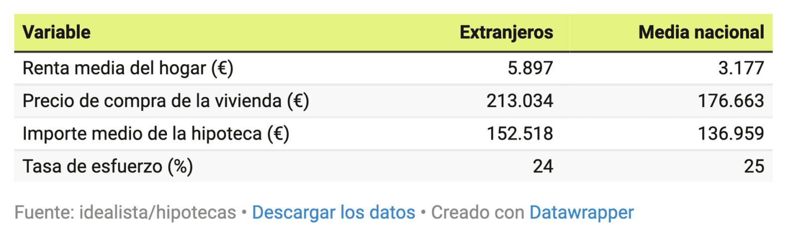 L’un des chiffres du rapport idealista/mortgages est que les non-résidents qui ont demandé un prêt pour acheter un logement en 2023 avaient un revenu moyen par ménage de 5.897€, un chiffre 85% plus élevé que la moyenne nationale (3.177€).