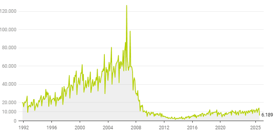 Rien qu’en août, le nombre de permis de construire délivrés pour des logements neufs a chuté de 23,5 % par rapport au même mois de 2024, pour s’établir à 6 189 unités, contre plus de 8 000 un an auparavant.