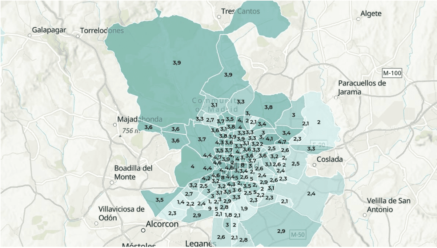 À l’inverse, les quartiers où les délais de location sont les plus longs sont les suivants : Universidad (4,5 mois), Justicia (4,5), Gaztambide (4,6), Palomas (4,6) et Sol (4,8).