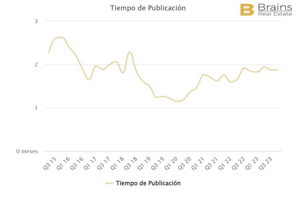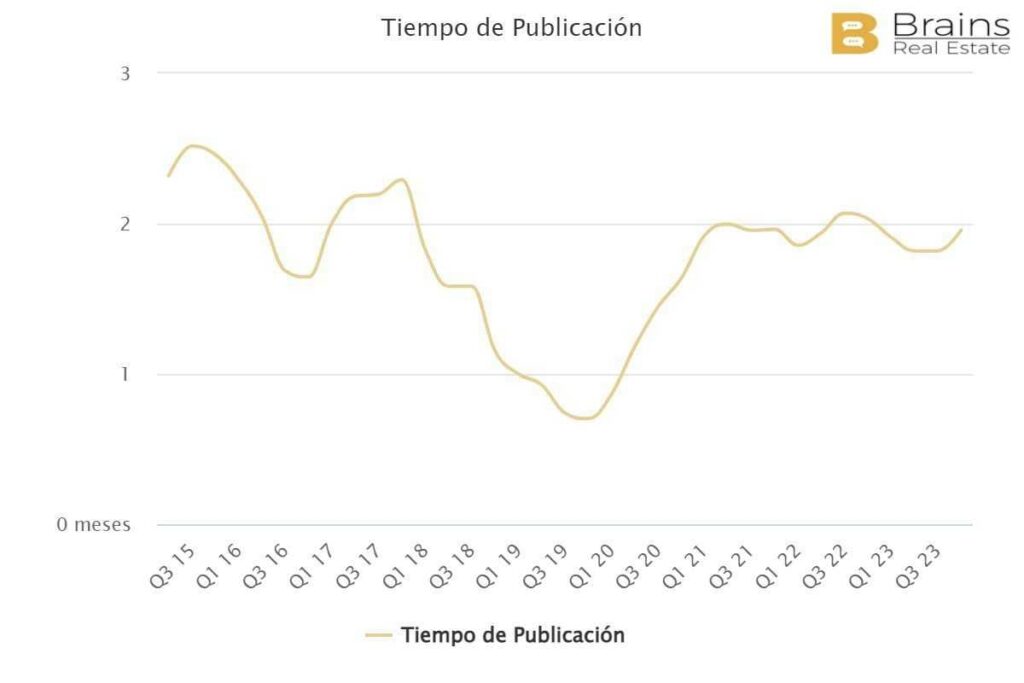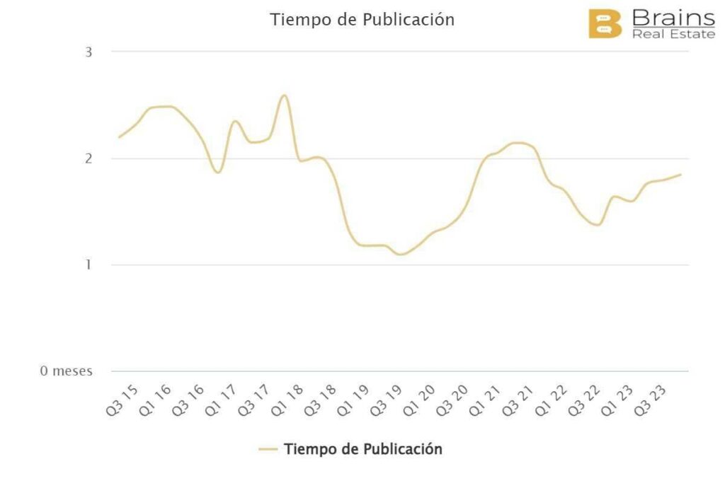 Le délai moyen de publication dans Entrevías est également de 1,8 mois. Comme dans le cas des quartiers précédents, les valeurs n’ont pas retrouvé les chiffres d’avant la crise, lorsqu’elles étaient inférieures à un mois.