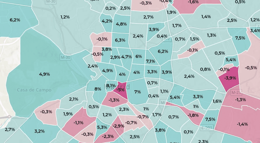 Découvrez dans quelles zones de Madrid les prix de l’immobilier ont le plus baissé en glissement trimestriel.