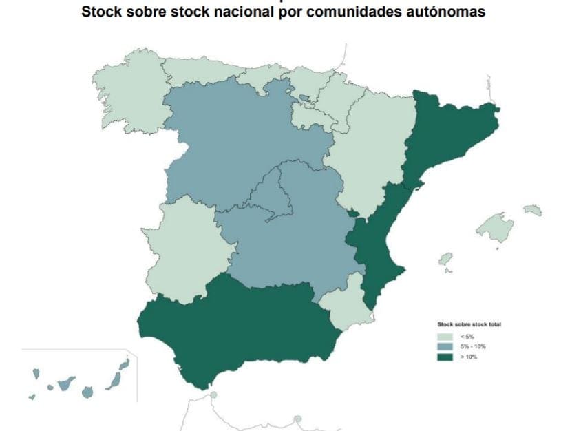 En Espagne, le pourcentage des stocks par rapport au parc de logements s’élevait à 1,7% en 2020. En ce sens, la Cantabrie, l’Estrémadure et la Navarre étaient les seules régions à avoir enregistré un excédent nul l’année dernière.