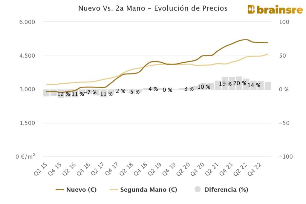 Le prix des logements neufs a atteint 5.071 €/m2, un prix qui a baissé de 1,7% en glissement annuel, alors qu’il a baissé de 0,2% au cours du dernier trimestre. Les logements d’occasion s’élèvent à 4.571 €/m2, ayant enregistré une croissance de 6,4% au cours de l’année dernière et de 2,1% au cours des trois derniers mois.