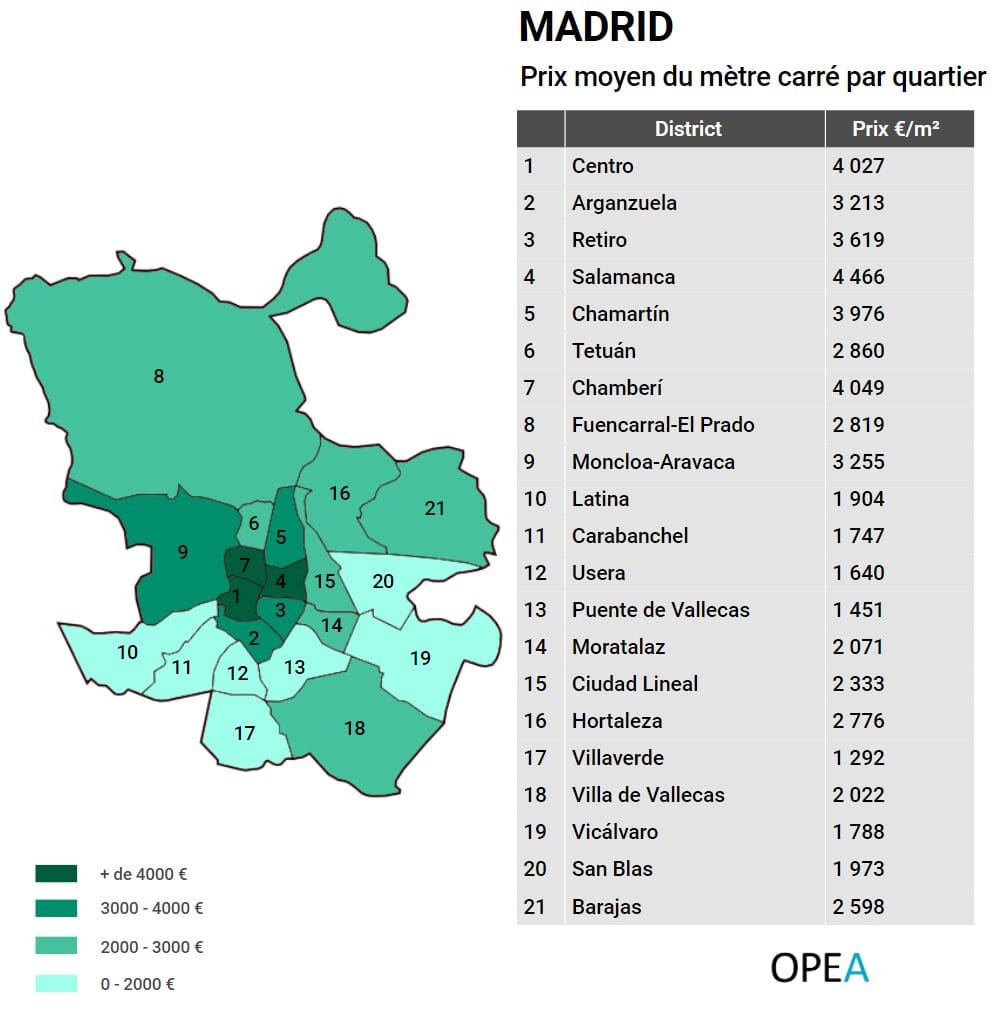 Madrid : prix au mètre carré quartier par quartier