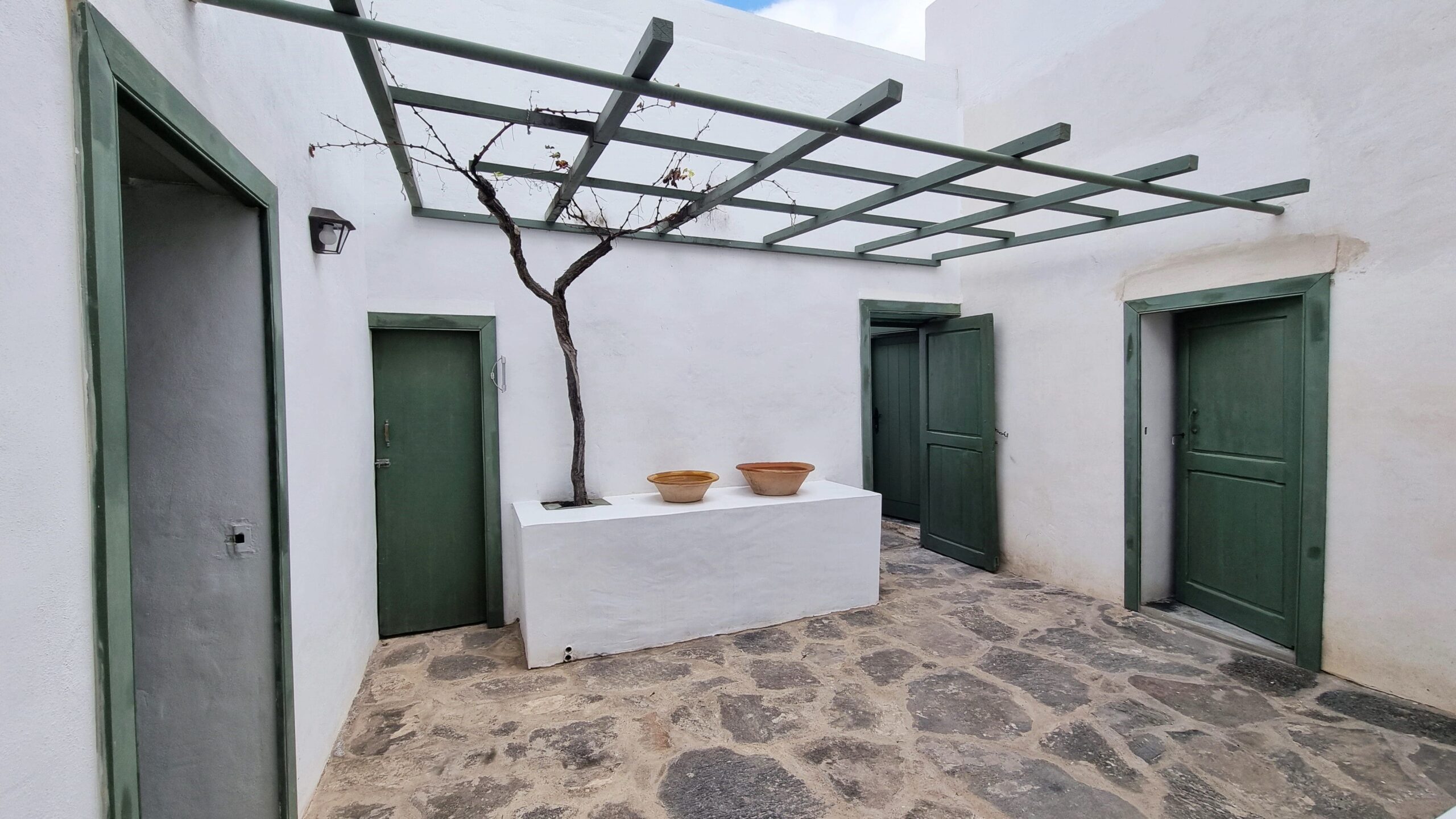 Il s’agit d’une maison individuelle de 2 étages, avec une superficie construite de 378m2 et 1213m2 de terrain. Elle se compose de 7 chambres (on peut en faire une de plus), avec une grande cuisine, 3 salles de bains, un salon d’environ 40 m2 avec Troja (mezzanine), 2 patios, 2 citernes, énorme débarras, un autre dans le jardin, barbecue, grande terrasse à l’arrière avec vue sur les montagnes, jardin avec des arbres protégés du vent par ses « Socos » et plus de 200 m2 de murs mitoyens en pierre volcanique couleur moutarde et pourpre. Des tons très originaux sur l’île! Possibilité de faire une piscine.