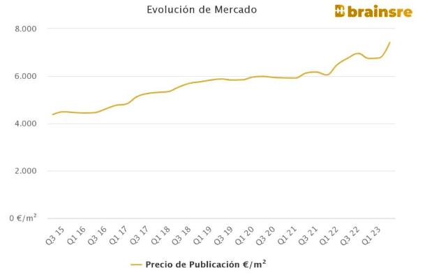 Quel est le prix des logements dans ce quartier luxueux de Madrid ? Dans la Lista, le prix de vente moyen d’un logement s’élève à 7.425 € par m2, un prix qui a considérablement augmenté au cours des deux dernières années. Plus précisément, d’une année sur l’autre, le prix a enregistré une augmentation de 9,9%, selon les données de la plateforme de données immobilières Brainsre.
