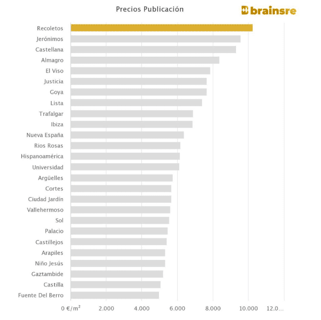 Jerónimos est également le deuxième quartier de la capitale où les prix de l’immobilier sont les plus élevés, atteignant 9.575 € par m2, juste derrière Recoletos (10.262€ par m2).