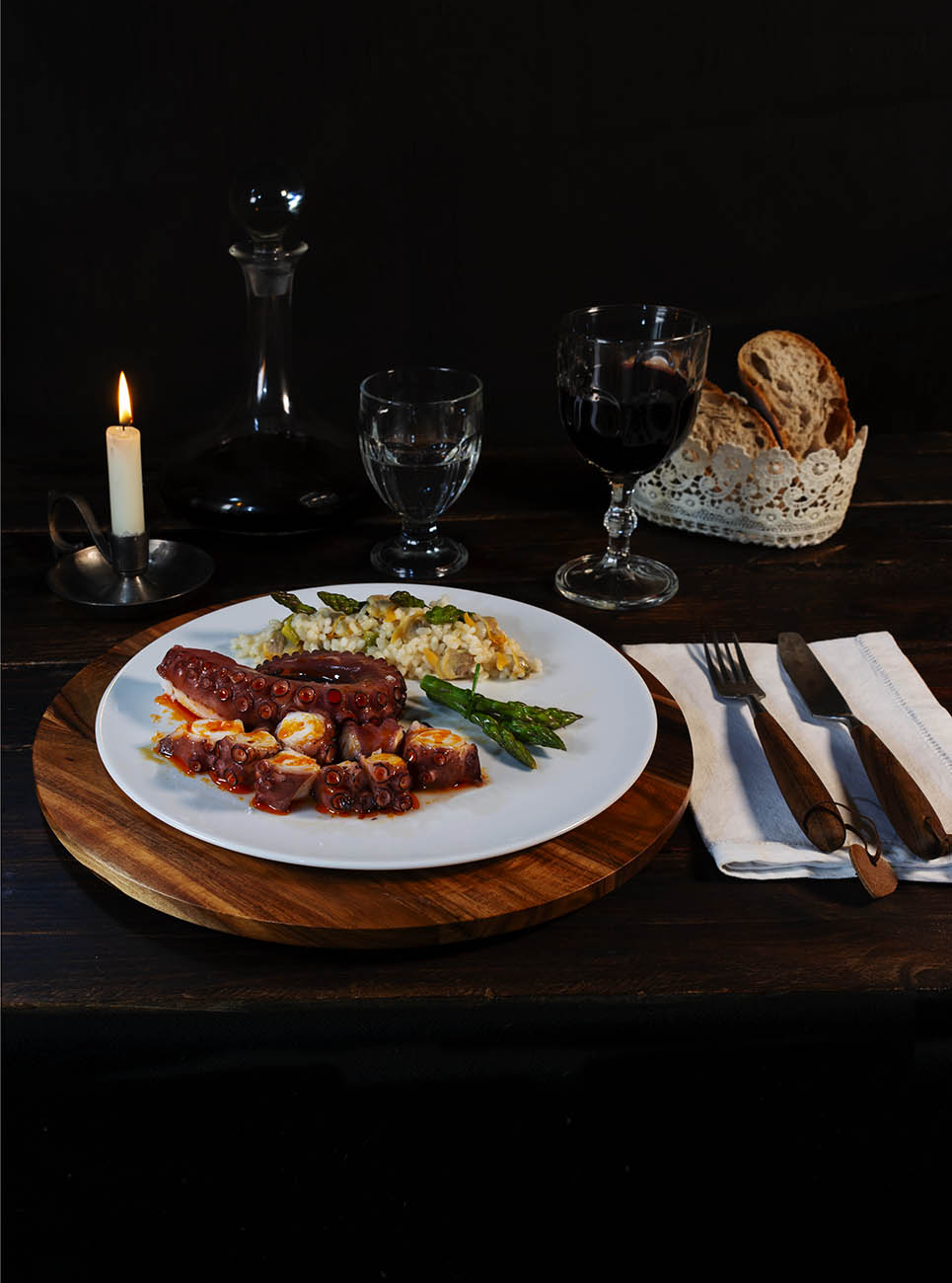 Le poulpe à la galicienne avec risotto et asperges vertes est un plat délicieux dans lequel le produit est fondamental pour obtenir un résultat fantastique.