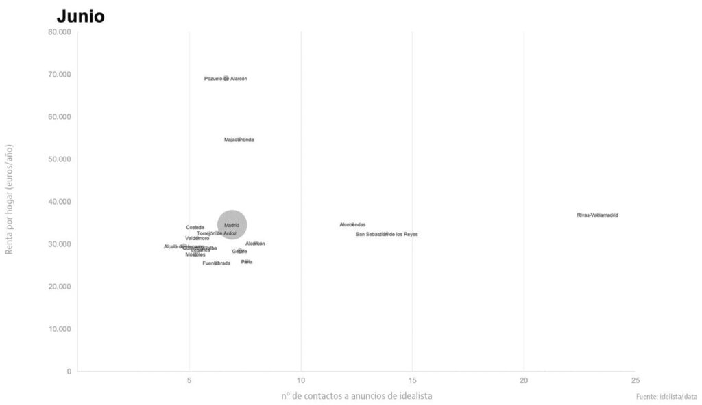 Quant au marché de la location, les demandes de recherche d’appartements à louer se sont multipliés davantage dans les villes catalanes (Sant Cugat et Casteldefells), alors qu’elles ont moins bougé dans les municipalités de Madrid, moins de 22 % à Pozuelo et Majadahonda. À Getxo, l’intérêt pour louer un appartement a augmenté de 28,2 % en juin.
