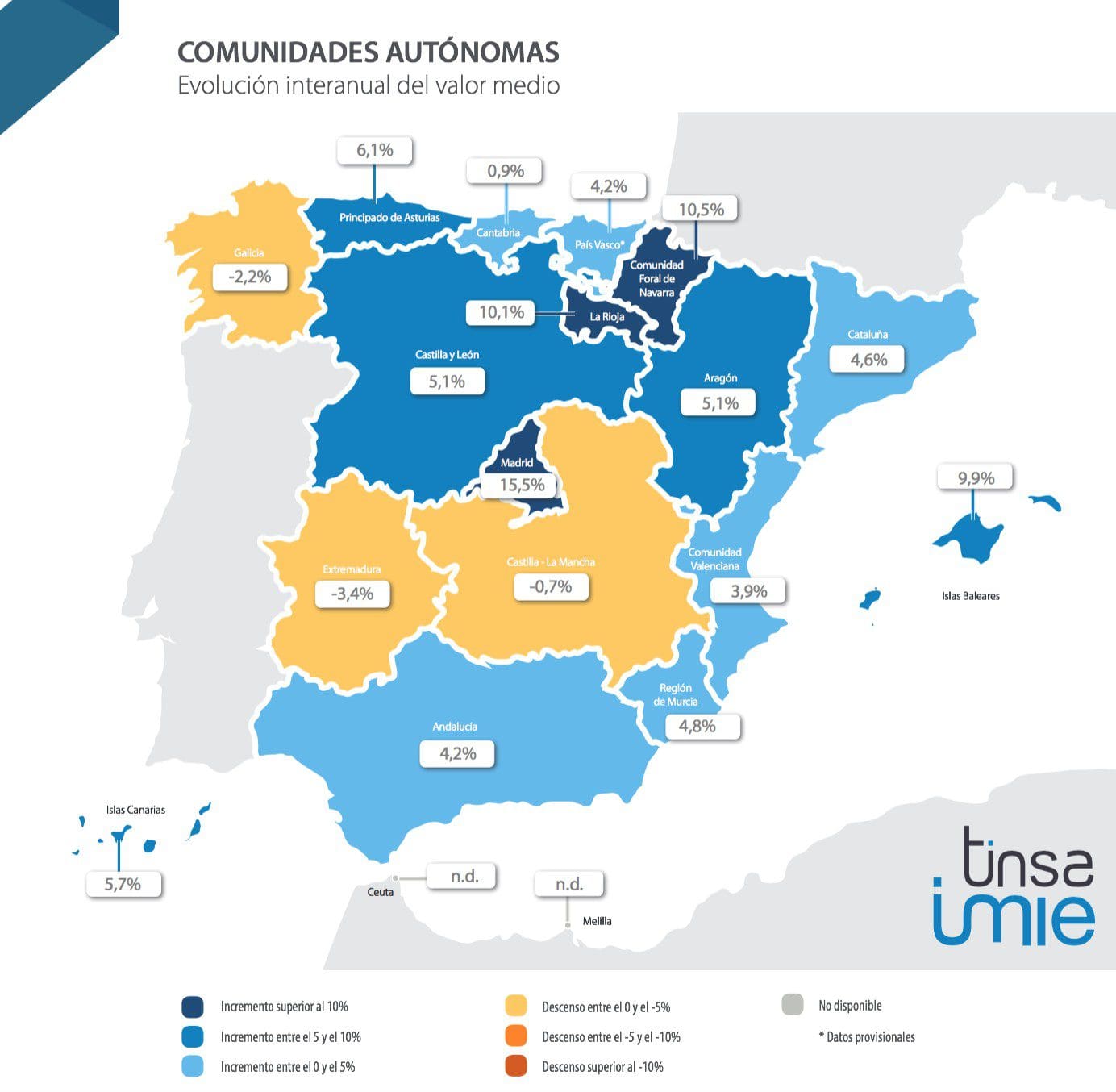 La reprise du marché résidentiel croît en intensité et en répartition géographique. Le prix moyen des logements en Espagne se situait à 1328€/m2 au deuxième trimestre, ce qui représente une augmentation de 6,6% au cours des 12 derniers mois, par rapport à l’augmentation 3,9% enregistrée au premier trimestre 2018. La valeur moyenne de 1300€/m2 n’a pas été dépassée depuis le premier trimestre 2013.