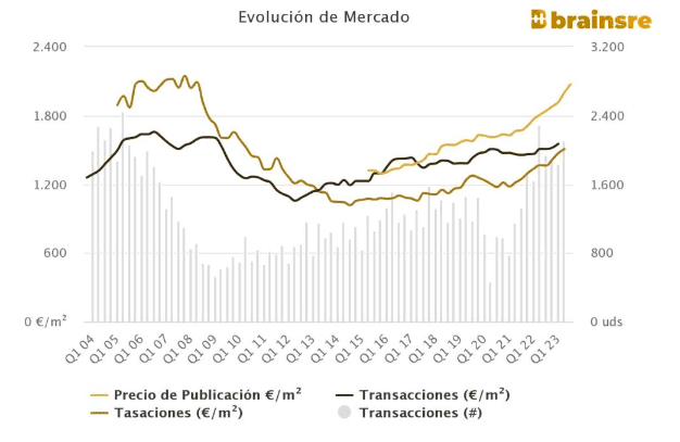 Le prix de vente des logements atteint actuellement des sommets, avec des hausses consécutives depuis le premier trimestre 2021 où le prix était de 1.627€ par m2.