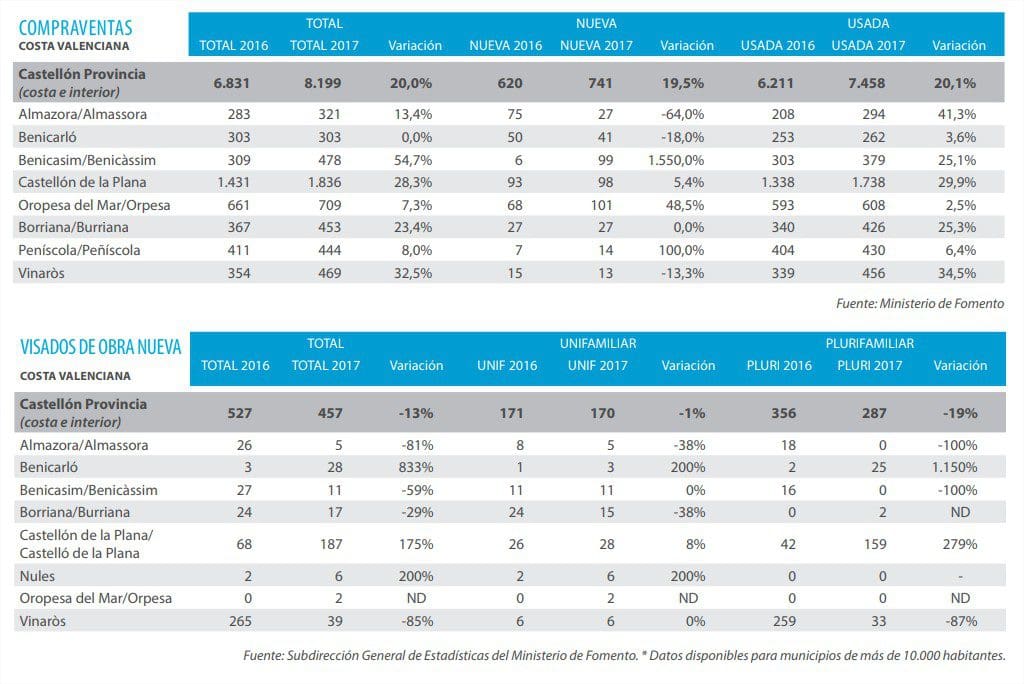 Dans les villes les plus touristiques telles que Peñiscola, Alcossebre et Oropesa de Mar, la tendance à la baisse des prix a considérablement ralenti et les achats sont faits, soit à des particuliers, soit à des fonds d’investissement. Benicassim est une population plus consolidée, qui est utilisée en résidence secondaire pour les habitants de Castellón, de nombreuses maisons n’ont donc pas été construites pendant la période de prospérité et l’ajustement des prix est minime puisqu’il n’y a pas eu une offre de logement importante.