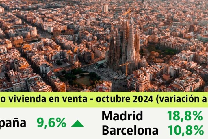 Breaking News·Études novembre 11, 2024 Les prix des logements augmentent de 9,6% en octobre : 6 mois de records Le prix des logements en Espagne a enregistré une hausse de 9,6% en glissement annuel au cours du mois d’octobre, s’établissant à 2.209 euros/m2,
