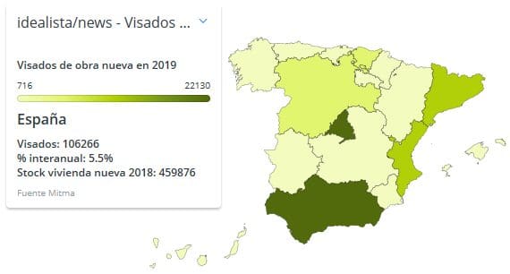Les données relatives aux visas accordés pour la construction de nouveaux logements confirment le ralentissement du secteur immobilier, surtout depuis le second semestre. (idealista/news)