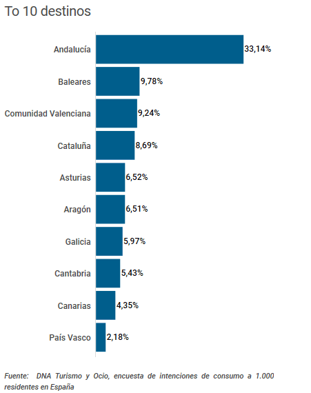 L’Andalousie, les Baléares et la Communauté de Valence sont en tête du classement des destinations nationales les plus prisées des touristes espagnols dans la nouvelle ère post-Coronavirus, selon une enquête menée auprès d’un millier de consommateurs par la société de conseil DNA Turismo y Ocio.
