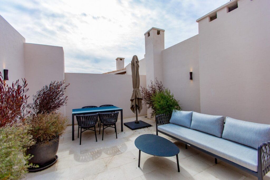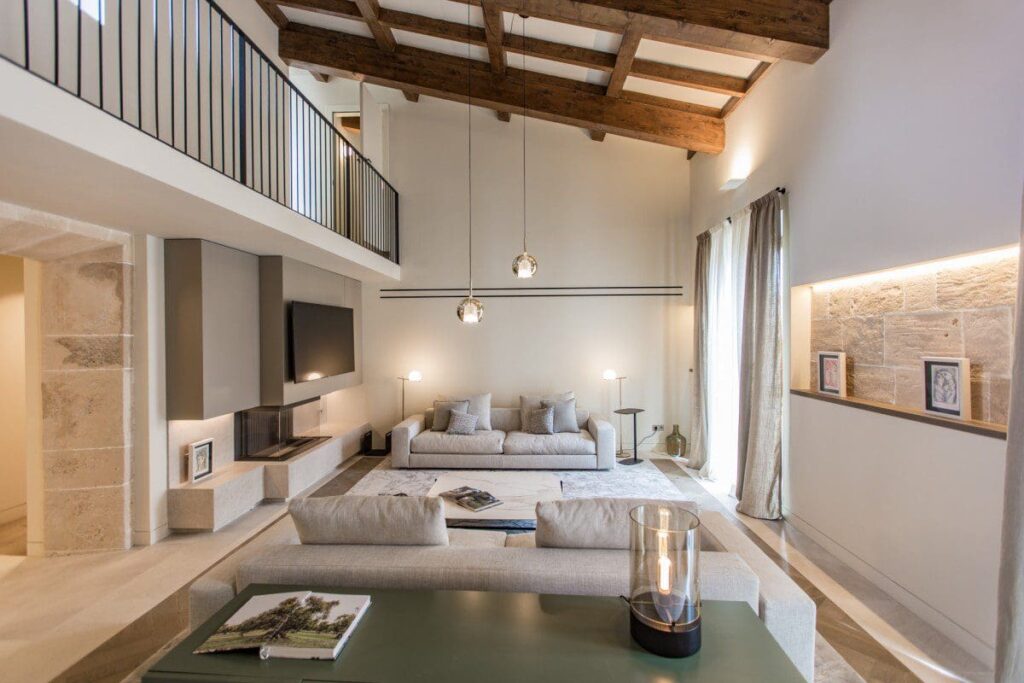 Es Palau, qui mesure 239 m², est l’une des maisons les plus spéciales. Située au premier étage, elle occupe une partie du rez-de-chaussée, ses pièces principales donnant sur son jardin privé avec piscine, auquel on accède par un escalier privé. “C’est comme si vous étiez dans une maison à l’intérieur d’un palais”, ajoute l’expert immobilier.