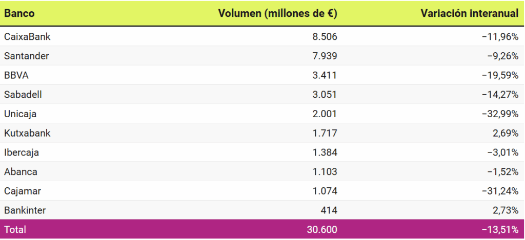 Le rapport précise que plus de la moitié de l’exposition totale aux briques des grandes banques espagnoles se trouve actuellement dans les bilans de CaixaBank (9.661 millions) et de Santander (8.749 millions), suivies de loin par BBVA (3.411 millions) et Sabadell (3.051 millions).