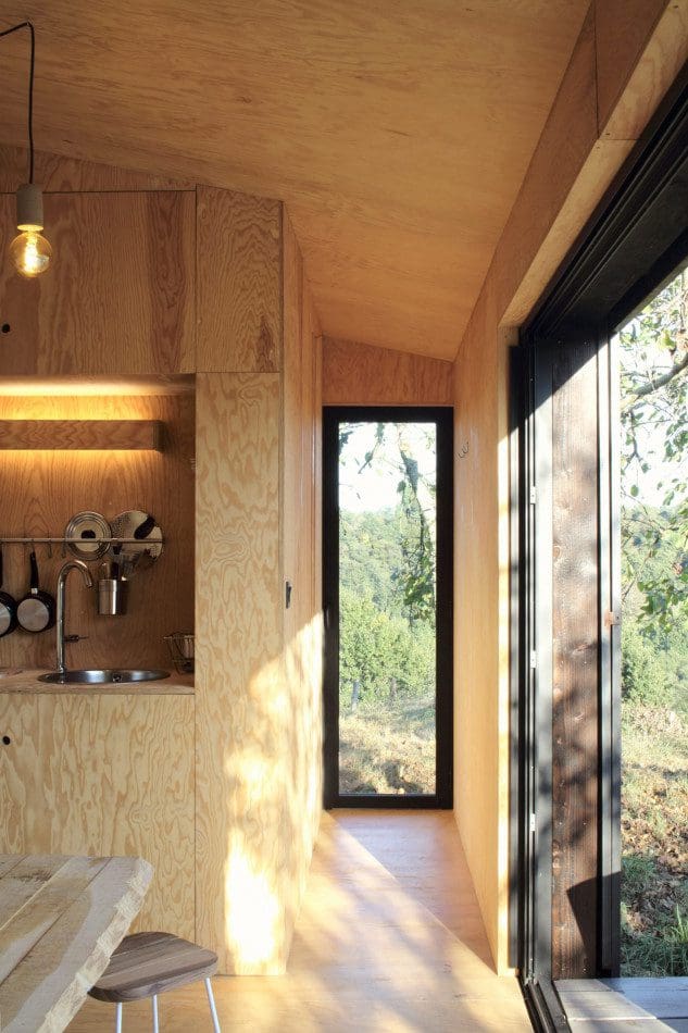 Heva est une petite cabane de 22 m2, conçue par le studio bordelais A6A, conçue et préfabriquée avant d’être installée à Ustaritz, dans le sud-ouest de la France. Il a deux lits doubles, un salon ouvert avec une petite cuisine et une petite douche. La maison peut être autonome en énergie et déconnectée du réseau.