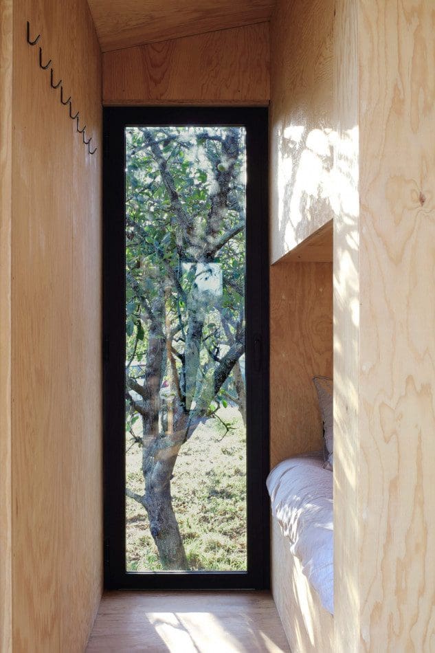 Heva est une petite cabane de 22 m2, conçue par le studio bordelais A6A, conçue et préfabriquée avant d’être installée à Ustaritz, dans le sud-ouest de la France. Il a deux lits doubles, un salon ouvert avec une petite cuisine et une petite douche. La maison peut être autonome en énergie et déconnectée du réseau.